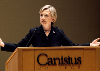 Sticking to her original schedule, Clinton then moved on to a Catholic college in Buffalo where she delivered a speech on health issues.