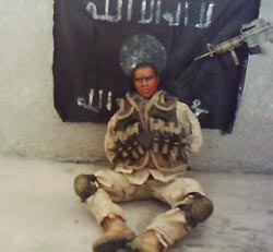 A picture of an "abducted" U.S. soldier in Iraq appeared on a Web site on Tuesday, but suspicion grew it was a hoax after a U.S. toy maker said it appeared to show a model soldier made by the company. "Our mujahideen ... have managed to capture the American soldier John Adam after killing a number of his colleagues," said the Mujahideen Squadrons in the undated statement on a Web site monitored in Dubai. It threatened to kill him.