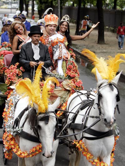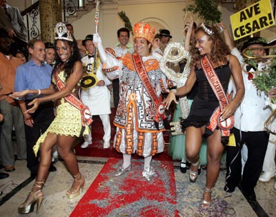 To the beat of samba drums, the King in red and white robes and crown received a giant symbolic key to the city from Mayor Cesar Maia who said he "officially abdicated" until Ash Wednesday, transferring all his powers to the Carnival Emperor.