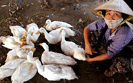 Using a technique called reverse genetics, scientists at the Key Laboratory of Animal Influenza, affiliated to Harbin Veterinary Research Institute, altered the genome sequence of the virus to construct a vaccine that is believed to be safe to both poultry and mammals. The vaccine will be administered to fowls in the country's key water areas, including rivers and lakes, a ministry statement released yesterday. Laboratory tests show the vaccine enables ducks and geese to fight H5N1, the highly lethal strain of bird flu, three weeks after the flocks were vaccinated, the statement claimed. The new vaccine also provides at least 10 months of protection for chickensfour months longer than the existing bird flu preventive drugs. "China has developed and mass-produced shots targeting H9 and H5N2, the less dangerous subtypes of avian influenza," Xu Shixin, a division director of the Veterinary Bureau of the Ministry of Agriculture, said yesterday. The bureau has released a certificate for the new vaccine as a registered veterinary drug. Ministry sources said the new vaccine had overcome the bottleneck in the technology of developing a remedy for preventing "highly pathogenic bird flu." Apart from the encouraging laboratory test results, field tests also indicate that upon receiving two shots of the vaccine, ducks and geese can each produce antibodies effective for 10 months and three months, respectively. The birds could then fight the H5N1 strain of virus. "The vaccination thus makes it impossible for ducks and geese to become the load of H5 subgroup bird flu virus. Therefore, it can cut a key link for the highly pathogenic avian influenza to spread," said the ministry statement. China developed advanced bird flu virus test technology (RT-PCR reagent kit) last April. This can detect H5, H7 and H9 subgroups of the bird flu simultaneously in several hours. Vaccination is a must for water fowls and poultry farms in Chinese regions at high risk, according to a national tele-conference in bird flu prevention on January 28 in Beijing. Elsewhere in Asia, the Cambodian Ministry of Health and the World Health Organization (WHO) confirmed on Saturday a 25-year-old woman from Kampot Province, who died of respiratory illness in Viet Nam on January 30, was infected with avian influenza. This is the first human case of avian influenza in Cambodia, according media reports. Hundreds of wild birds have died of avian influenza in central Thailand in the past two weeks. |
