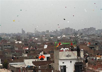 during the kite flying festival, Basant, Sunday, Feb. 6, 2005, in Lahore,