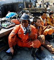 A child leans on the frame of the door after the house of his family was damaged by the earthquake in Xinjiang Uyguir Autonomous Region on February 15, 2005. [Xinhua]