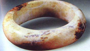 The photo shows a jade bracelet polished by the Liangzhu cultrue which dates back to as early as 5300 B.C.