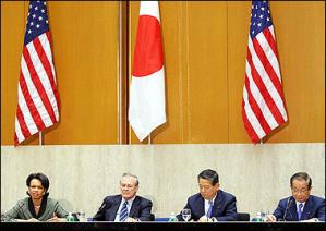 L-R: US Secretary of State Condoleezza Rice, US Secretary of Defense Donald Rumsfeld, Japanese Foreign Minister Nobutaka Machimura and Japanese Defense Minister Yoshinori Ono attend a press conference after talks at the US State Department.[AFP]