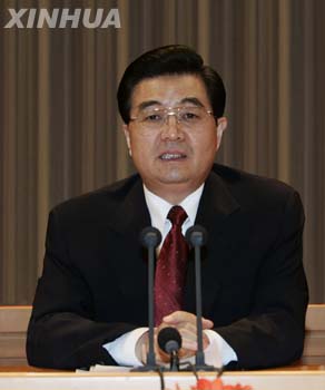 Chinese President and General Secretary of the Central Committee of the Communist Party of China (CPC) Hu Jintao delivers an important speech at the opening ceremony of a 7-day training course in Beijing, capital of China, on Feb. 19, 2005. The course was offered by the Party School of the CPC Central Committee and attended by major provincial-and ministerial-level leaders. [Xinhua]