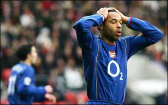 Saints manager Harry Redknapp said he was furious with Prutton whose second wild tackle resulted in Arsenal's Robert Pires being carried off on a stretcher with a gashed ankle. FOOLISH TACKLE "Prutton had no need to tackle Pires," Redknapp told Sky Sports. "It was a foolish thing to do and I've got no sympathy for him at all, we were playing well at that stage and it left us in big trouble. "Their player (Van Persie) was equally silly, his red card let us back in the game. At halftime I would have settled for a point." Arsenal manager Arsene Wenger said his side had responded well to the lame display in Munich. "It was very positive for us today, even though we didn't get the result we wanted," he said. "I'm angry because (Van Persie's sending off) put us in a difficult position that wasn't needed." Arsenal stay third on 58 points, four behind United. Chelsea, who play Liverpool in the League Cup final Sunday, have 68 points and a game in hand on their two main rivals. Fourth-placed Everton consolidated the final Champions League qualification spot with an impressive 3-1 victory at Aston Villa -- their first at Villa Park since 1987. Leon Osman scored twice and Tim Cahill added another as Everton moved eight points ahead of fifth-placed Liverpool. Crystal Palace improved their chances of avoiding relegation as Andy Johnson scored two penalties in a 2-0 victory at home to his former club Birmingham City. Palace have 25 points, four better off than Southampton. Substitutes Frederic Kanoute and Robbie Keane scored late goals to earn Tottenham Hotspur a 2-0 victory over Fulham as they moved up to eighth. It was only their second victory in a London derby in the last 23.