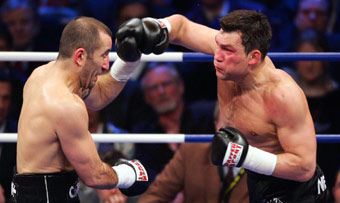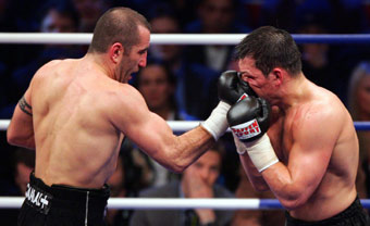 Fabrice Tiozzo from France (L) exchange punches during their fight at the