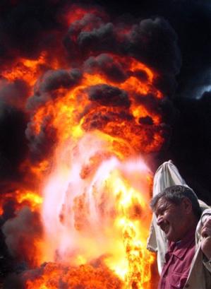 Oil fire still raging in Northern Iraq A major oil fire raged Saturday after insurgents blew up a pipeline in the north of the country. The family of an anchorwoman for a U.S.-funded state television station — a mother of four who was repeatedly shot in the head — found her body dumped on a street in the northern city of Mosul.
