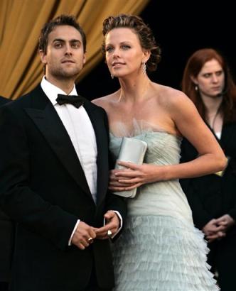 Actress Charlize Theron, last year's best actress winner, arrives with date, actor Stuart Townsend, for the 77th Academy Awards Sunday, Feb. 27, 2005, in Los Angeles. [AP]