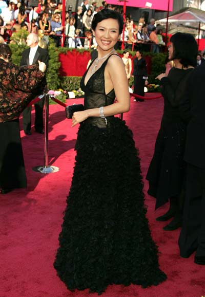Chinese actress Zhang Ziyi arrives at the 77th annual Academy Awards in Hollywood February 27, 2005. Zhang will present an award during the ceremony. [Reuters]