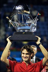 Sunday's title showdown was a replay of the final the pair played in Rotterdam last week, which Federer won in a third-set tiebreak. But in Dubai it looked as if the top seed would this time sweep to victory in under an hour as he dominated the opening set and sped to a 3-1 lead in the second before eighth seed Ljubicic began to offer any real competition. "I really wanted to get off to a good start this time, and I did, and I could really play with confidence while he still looking for his rhythm," Federer said. "That took me all the way through to 6-1 3-1 0-30 on his serve and I almost ran away with it. But he came back, and that was a good effort on his side." The Croat levelled the second set at 4-4 and saved a match point at 6-5 in the tiebreak before eventually claiming it 8-6. After an early exchange of breaks in the deciding set, Federer broke with a forehand winner to lead 5-3 and served out for victory. Ljubicic, with 20 victories, had won more matches than any other player on the ATP Tour until Federer equalled his total in the final. And he looked as if he had hit the wall as he struggled to put his game together. USUAL FIRE-POWER The eighth seed failed to find his usual fire-power on his serve and made countless backhand errors, and Federer was not called upon to do anything out of the ordinary as he built a commanding lead. It is a credit to the Croatian that he pushed the match to a third set and Federer said he had found it difficult to control his emotions after Ljubicic edged that tiebreak. "It was just disappointing, after having match point and being up all the time, and he just catches you in the last bit and you have to go into extra time," said Federer. "I think mentally it's quite an effort to stay quiet because the crowd's getting into it. In the end it was a real dog-fight." Ljubicic was at a loss to explain his early collapse. "I didn't start badly, but then suddenly I felt like my racket was loose and the balls were flying a little bit too much. And with Roger, if you relax for a second it just goes very quick," he said. "After those first three games it was no match at all. I don't know, it was really weird. I was playing really well the whole year, and then suddenly I found myself in trouble just to put the ball in the court." But despite his defeat, the world number 14 was satisfied with the ultimate quality of his challenge, and the way he has performed this year. "I had a chance in the third, and for me it's really positive to twice in two weeks have a chance against Roger to win the match. It's an absolutely great boost to my confidence that I'm up there and belong with top-class players. "And I'm satisfied absolutely the way the season is going for me. Four finals, one semi out of six tournaments, who can complain. It's not like you get depressed because you lose four finals, not at all, especially if three of them are against Roger. "I'm looking forward to beating him in the future, because I think it's not far away."