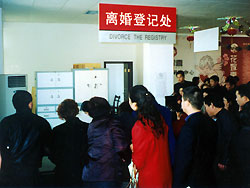 Couples queue to make divorce transactions in Yichang, Central China's Hubei Province on December 20, 2004. [newsphoto/file]