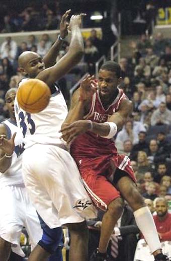 basket. Rockets' Tracy McGrady, foreground center, gets in position for a