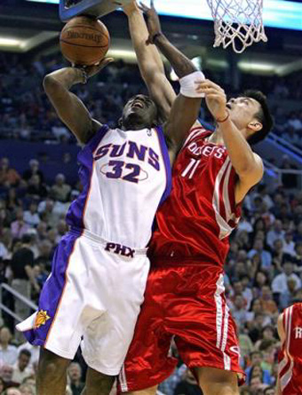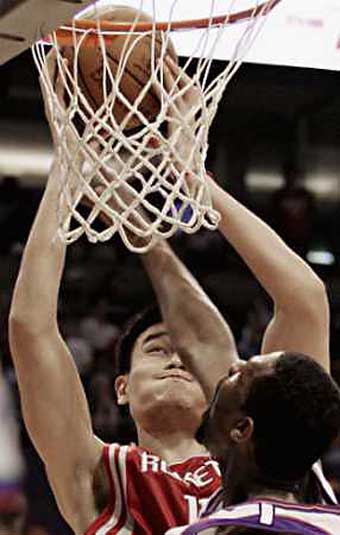 quarter NBA action in Phoenix, Arizona, March 11, 2005. Yao grabbed 22