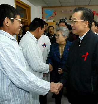 On World AIDS Day in 2003, Premier Wen Jiabao shook hands with AIDS patients at a Beijing hospital in a symbolic display of commitment to fighting the disease.