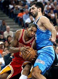 Sacramento got it back down to six on a dunk by Brian Skinner with 3:45 to go and had a chance to get it even closer but Skinner knocked a rebound out of bounds.