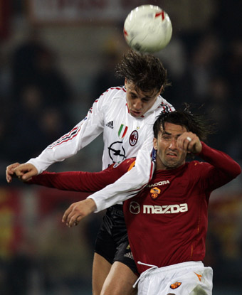 as Cristian Panucci of AS Roma jumps for the ball during their Serie A