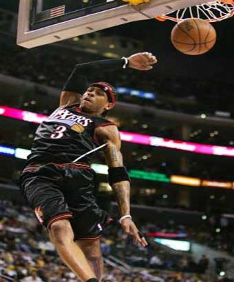 Philadelphia 76ers' Allen Iverson dunks the