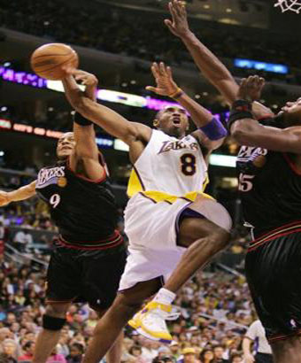 against the Philadelphia 76ers, Sunday, March 27, 2005, in Los Angeles.