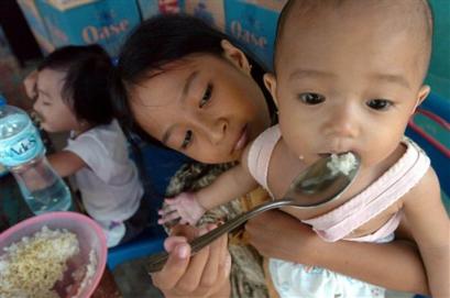 An Indonesian woman feeds her child in a refugee camp on the Nias Island, Indonesia, Sunday, April 10, 2005. The rescue work on the island will be focused on its reconstruction, said a local official on Sunday. The Nias Island was the epicenter of the strong quake on March 28, which left more than 600 people dead, thousands of people injured and thousands of others homeless. [AP]