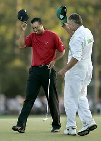 Steve Williams, on the 18th green after winning the 2005 Masters