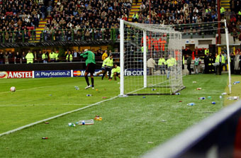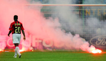 on Tuesday after AC Milan's goalkeeper Dida was struck by a flare thrown