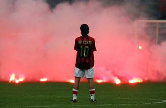 Stadium in Milan April 12, 2005. The match was abandoned after 73 minutes