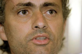 Chelsea soccer club manager Jose Mourhino speaks a press conference in Tel Aviv, in this Monday March 28, 2005 file photo. Chelsea manager Jose Mourinho said in an interview with Portuguese television Monday April 18, 2005 that UEFA's decision to ban him from the bench for two Champions League games was 'totally unfair' and described a UEFA search of one of his backroom staff as 'an absurd hunt.' [AP]