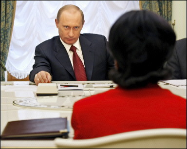 "They need to be rules that people can understand. They need to be consistent rules, applied consistently over time ... (that) we would hope would not disadvantage foreign investors versus domestic investors." The Kremlin seemed for the most part little fazed by the criticisms and was eager to focus on prospects for developing cooperation with the United States. Putin hailed his "businesslike rapport" with Rice. When she flew off to Vilnius for a round of NATO meetings, Rice pronounced her self satisfied with her talks, which she said would prepare the May 9 visit by Bush for the 60th anniversary of the end of World War II. Rice was also looking forward to future performances here and gave a long explanation of the intimidating difficulties of Russian grammar to explain why she spoke mostly English in her local radio interview. "I was sorry that I wasn't doing the entire interview in Russian. But the next time ..." |
