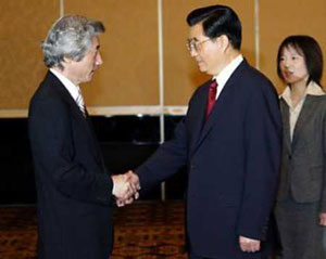 At the end of the closed door talks, President Hu expressed hishope that the two countries will regard the meeting as a turning point and take feasible measures to solve disagreements, surmount difficulties and make joint efforts to push the bilateral relationto develop healthily and steadily.