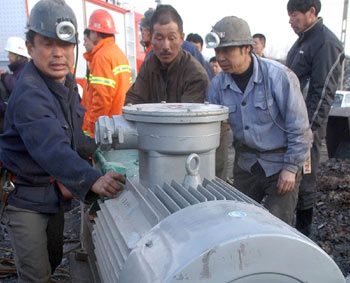 The colliery, called Fushun Coal Mine and a township enterprise, was operating illegally. The province's Vice-Governor Shi Jichun went to the site to direct the rescue team, which consisted of a local fire-fighting team, a public security task force and local officials. The mine owner is being questioned by the police. In the third accident - a chemical workshop explosion in Qijiang County, Southwest China's Chongqing Municipality - at least 12 people were killed, local officials said. Ten people were injured and seven were still missing, said Pan Dexiang, a county official. The blast occurred on Thursday evening at an emulsification workshop at Dongxi Chemical Plant. It destroyed a three-story factory building and left a cone-shaped ditch about two metres deep. Residents 300 metres away were safely evacuated. Most of them heard the huge blast and felt the ground shake. Some windows were broken and a tree fell over. Building debris was mixed with explosive material, which posed the risk of a second blast that could threaten the rescue team. A group of explosive and geology experts were dispatched to the workshop to guarantee the safety of the rescue work. Ten tons of hazardous chemicals have been removed from the factory's warehouse to ensure safety during the rescue operation, and rescuers are cleaning up the debris and explosives left at the site. However, another batch of explosives is still buried under the rubble, said a source. Dongxi Plant has raised 2.5 million yuan (US$300,000) to finance medical costs incurred by the injured workers and to compensate the victims' families. A local insurance company has paid 500,000 (US$60,000) yuan in advance payments. Detailed compensation measures are being made, which will guarantee a minimum compensation fee of some 200,000 yuan (US$24,000) to each of the victims.