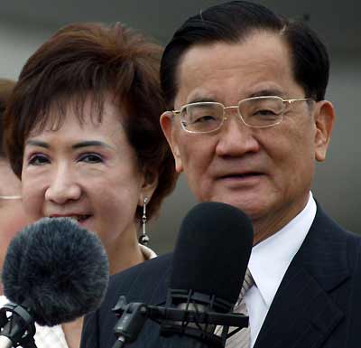 "Beijing is a political and cultural center, a world metropolis with a history of thousand years. Here we can see the coexistence of tradition and modernity, Chinese culture and world culture, andprosperous material and cultural and ethical civilizations," Lien said. The KMT chairman said he would very much like to take the advantage of this opportunity of his visit to learn more about the development in Beijing. "As you all know, I myself and my delegation will exchange views with General Secretary Hu Jintao and other leaders on major issues concerning peace and economic, trade and cultural exchangesacross the Straits," he said.