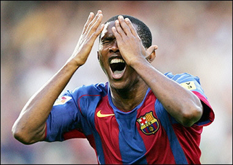 Barca were making hard work of overcoming their struggling visitors, who had several chances in the first half, but one moment of brilliance from Samuel Eto'o turned the tide for Barcelona. The African Player of the Year and Spanish first division's top scorer broke the deadlock after 66 minutes when he picked up a loose ball on the edge of the area and fired home an inch-perfect curling right foot shot. With their noses in front, Barca never looked back. The Catalan club's highly-rated 18-year-old midfielder Lionel Messi got their second goal just a few seconds before the end of regulation time. Messi, who had only been on the field five minutes, got his first goal in Barca's senior ranks when he sent a delicate chip from the side of the box over the outstretched arms of Albacete goalkeeper Raul Valbuena. Two late goals from Ronaldo saw Real Madrid win 2-0 at Real Sociedad on Saturday, to notch up their sixth consecutive victory. "Everything is still possible. And Barcelona can be assured we're not going to hand the league title to them on a plate," said Real Madrid coach Wanderley Luxemburgo on Sunday. Manchester United flop Diego Forlan scored twice to spark Villarreal to a 4-0 thrashing of Getafe on Sunday. The Uruguayan striker continued to put behind him the dismal memories of his stint at Old Trafford with two goals to take his tally for the Spanish League season to 20. The number is exactly double the number he managed in his three seasons playing in the English Premiership. Juan Pablo Sorin got Villarreal off to a quick start heading home a Quique Alvarez corner after 13 minutes. Forlan got his first of the day four minutes later, finishing off a neat cross from Luciano Figueroa. Santi Cazorla put Villarreal three up from outside the area barely a minute after the break, before Forlan scored again after 52 minutes. "This victory means that getting into the Champions League is now back in our own hands," said a satisfied Villarreal coach Manuel Pellegrini, whose team move up to fourth place. "We found the goals in this game that we should have had against Real Madrid and Real Betis," added Pellegrini, reflecting on two recent games where Villarreal have dropped points. Espanyol saw their own hopes of playing in Europe's top club competition for the first time take a knock when they went down 3-2 at struggling Real Mallorca. Hugo Ibarra got the opener after 10 minutes for Espanyol, a left foot blast from beyond the border of the box, but three second half goals from Mallorca maintained their hopes of avoiding relegation. However, the Barcelona-based visitors have only themselves to blame for the defeat, which leaves them down in sixth place. Alejandro Campano brought Mallorca level five minutes after half time but Espanyol were reduced to 10 men just three minutes later after Alberto Lopo was sent off for a brutal tackle on Luis Garcia. "These sort of things happen in away games. We went downhill from that point," said Espanyol coach Miguel Angel Lotina, reflecting on Lopo's dismissal. "But the fact that this team is in the relegation zone should tell everybody about the standards of the league. This is a team with a lot of quality, good players and still they have a foot in the second division. "All I can say is that this is a complicated league,"added Lotina ruefully. Real Betis were held to a 1-1 draw at Racing Santander to stay seventh. At the other end of the table, Malaga secured a 1-0 win at Levante with Fernando Baiano getting the only goal of the game after 39 minutes. The result leaves Levante, last season's second division champions, perched just beyond the bottom three after failing to get a victory in their last five outings. Levante coach Bernd Schuster was fired shortly after the end of the game. Spanish League standings ahead of Sunday's late match, Sevilla v Deportivo La Coruna (played, won, drawn, lost, goals for, goals against, points): Barcelona 34 24 6 4 67 25 78 Real Madrid 34 23 3 8 61 29 72 Sevilla 33 16 7 10 40 36 55 Villarreal 34 15 10 9 59 33 55 Valencia 34 13 14 7 51 35 53 Espanyol 34 15 8 11 46 43 53 Real Betis 34 13 13 8 55 46 52 Real Zaragoza 34 14 7 13 47 47 49 Athletic Bilbao 34 13 9 12 54 46 48 Atletico Madrid 34 13 9 12 37 28 48 Deportivo La Coruna 33 11 13 9 41 42 46 Real Sociedad 34 13 6 15 44 49 45 Osasuna 34 12 7 15 42 59 43 Getafe 34 11 9 14 33 42 42 Malaga 34 12 6 16 33 45 42 Racing Santander 34 10 8 16 38 50 38 Levante 34 9 8 17 36 50 35 Real Mallorca 34 8 7 19 33 58 31 Numancia 34 5 9 20 25 55 24 Albacete 34 5 9 20 28 51 24 if teams are tied on points but have played each other home-and-away then positions are decided on head-to-head results, not goal difference.