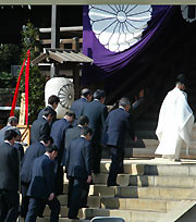 TBS television network said that 61 percent of Japanese believe Koizumi should not visit the shrine while in office, while 34 percent said he should continue what he believes. Koizumi has visited Yasukuni Shrine four times since becoming prime minister in 2001. The visits have riled neighboring countries, who consider the shrine a glorification of Japan's militarist past. Hidenao Nakagawa of the ruling Liberal Democratic Party said Sunday that the leader would likely visit again. ``I think Koizumi will visit the shrine again this year, while carefully considering the timing,'' Nakagawa said on a TV talk show. Koizumi has argued that the visits are simply a way of paying respects to the country's war dead, rather than an honoring of Tokyo's wartime militarism. Chinese officials, including Foreign Minister Li Zhaoxing this past weekend, have repeatedly cited the visits in explaining deteriorating relations and anti-Japan protests in China last month. In the TBS poll, the largest percentage of respondents attributed the surge in anti-Japan sentiments in China to Chinese education and its negative portrayal of Japan. Respondents also cited Japan's own approach to history, wartime atrocities committed by Japan's military and visits to Yasukuni. Tokyo-Beijing relations have sunk to the lowest level in decades since violent anti-Japan protests erupted last month in several Chinese cities over Tokyo's wartime past, and over Japan's push for a permanent UN Security Council seat. The Yasukuni shrine honors 2.5 million Japanese war dead, including wartime Prime Minister and convicted war criminal Hideki Tojo. Another trip to the shrine this year by Koizumi would be certain to anger China, South Korea and other countries in the region. But another LDP lawmaker, Koichi Kato who is a close Koizumi ally, said halting the visits would not help Japan-China relations. The only way to appease Beijing would be to find a different shrine for the convicted World War II criminals, or to set up a separate, secular war memorial, Kato said during the TV Asahi show Sunday. Tokyo has been thinking of creating a secular memorial, but efforts have stalled. Koizumi has not paid respects there since January 2004. He has been coy about further visits, saying only that worshipping at Yasukuni would be carefully considered. The visits are supported by ruling party's conservative wing, as well as a powerful lobbying group for family members of war dead. The TBS poll questioned 1,210 people on May 5 to 8 by phone. No margin of error was provided. |