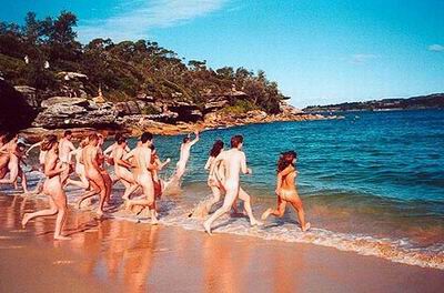 A group of officers with British navy swim nakedj in the Caribbean. [sina]