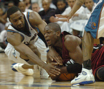 ball with Washington Wizards' Gilbert Arenas during second half of Game 3