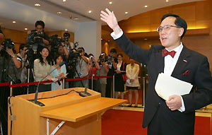 Announcing his move at the government headquarters last night, Tsang avowed he would face not only the 800 Election Committee (EC) members, but also the general public once his resignation was approved. He pledged to engage the community to win their support in the by-election, scheduled for July 10. His resignation was announced immediately after the Legislative Council (LegCo) passed, by 33 to 21, a bill to amend the Chief Executive Election Ordinance to limit the tenure of the CE returned in the by-election to two years. Explaining his campaign move, Tsang said it was motivated by a commitment to working for the successful implementation of "one country, two systems" in the SAR. "I want to contribute to the successful implementation of 'one country, two systems.' I want to contribute to the ongoing success of Hong Kong," he stated. "I want Hong Kong people to take pride in being part of the country as well as our own unique community." He said that while the State Council considered his resignation, he would get down to the details with his campaign team to prepare for the election. He pledged: "After the State Council approval, I will share my philosophy on governance with the community as soon as possible. I will announce my election manifesto. I will explain my belief and values to the 800 members of the EC and to the 7 million people of Hong Kong. I will work hard to engage the community and garner their support." Tsang said his decision was supported by his family and friends, adding he had no fear in the challenge because it was a "selfless" decision. Tsang tendered his resignation to the State Council in the evening and proceeded on leave immediately. The SAR's leadership during the transition is passed to Financial Secretary Henry Tang who, according to Article 53 of the Basic Law, stepped in as the acting CE. Secretary for Housing, Planning and Lands Michael Suen, meanwhile, acts as the chief secretary for administration. Declaring personal support for Tsang, Tang assured he would stick to election guidelines that required any canvassing activities by principal officials to be free of interest conflict, not to involve public resources and not to harm the neutrality of civil service. "I strongly believe the decision reflects his commitment to the successful implementation of 'one country, two systems' as well as the stability and prosperity prevailing in Hong Kong," Tang said. Tang said he had worked with Tsang on different capacities for many years and found he was a highly capable official with extensive administrative experience. "His performance has been well received and supported by the people of Hong Kong."