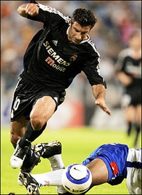 Marca said the 32-year-old Portuguese international, who fell out with Real coach Vanderlei Luxemburgo after being consigned to the bench for the latter part of the season, had been given permission to negotiate with other clubs. Figo, who has a year to run on his contract at Real, has made it clear that he is unhappy at the way he has been treated by the club. "The way they treated me when I was dropped wasn't right," he told Marca. "They didn't tell me I wasn't going to play. It really hurt my pride." Real's director of football Arrigo Sacchi said Figo's future in Madrid was in the balance. "I don't know whether he will stay," the Italian told Punto Radio. "He's got a contract with us and I hope he stays because he could still be a great player for us and he is a great professional. "But I think his future depends more on him than it does on us...If he continues to feel down about his situation then it won't be good for him or for us." Figo joined Real in 2000 in one of the most controversial transfers in the history of Spanish football, when newly elected club president Florentino Perez paid a then world record $56 million to buy him out of his contract with arch-rivals Barcelona. The midfielder, who is viewed as Real's first Galactico signing, helped guide them to the league title in his first season at the club and played an important part in their victories in the 2002 European Cup and the 2003 Spanish championship. He recently came out of international retirement and is training with the Portugal squad preparing for Saturday's World Cup qualifier against Slovakia. Marca reported that Serie A side Inter Milan were interested in signing Figo and have also made enquiries about Real's Argentine internationals Santiago Solari and Walter Samuel.