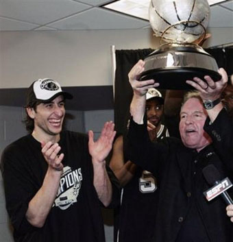 Tim Duncan had 31 points and 15 rebounds and the Spurs' defense keyed a gamechanging 18-4 third-quarter run, giving them enough of a cushion to hold off Stoudemire and the Phoenix Suns with a 101-95 victory Wednesday night that ended the Western Conference finals in five games. As thrilled as the Spurs are about making the Finals for the second time in three years, and third in seven, they're likely also relieved to be done with this series — and Stoudemire. San Antonio led 3-0 before losing Game 4 at home and certainly didn't want to go home for a Game 6 with the Suns halfway to pulling off a comeback that's unprecedented in NBA history, but fresh in the minds of sports fans after the Boston Red Sox did it last October. The victory gives Duncan's aching ankles and Manu Ginobili's bumps and bruises plenty of time to heal while San Antonio waits to find out whether it will next face Miami or Detroit. The Heat and Pistons are tied 2-2 with Game 5 on Thursday night in Miami. The final round will start June 9, and the Spurs, who won it all in 1999 and 2003, will be the home team regardless. Stoudemire almost kept the Suns' fabulous season alive by scoring 17 of his 42 points in the fourth quarter, several on the powerful slam dunks that have become his calling card. His 37-point average in this series broke Kareem Abdul-Jabbar's record for a conference finals first-timer and he set the club record for consecutive playoff games with at least 30 points, doing so in all five. Phoenix hadn't even had a player score 30 points in five straight regular-season games since Charles Barkley in March 1993. Stoudemire scored the final two points just before time expired, then congratulated Duncan after the buzzer, with the two-time MVP offering congrats of his own. "These guys are an incredible offensive team and they kept coming but we stuck with it," Duncan said. "These weren't the kind of scores we like to play in but we made it happen." Phoenix came into this season never expecting to still be playing in June after winning 29 games in 2003-04. But with an energetic offense, the Suns ran off the most points and most wins in the NBA and charged through the first two rounds. This was only the second time in 15 postseason games they failed to score 100 points, the other also against the Spurs. With big first halves from Stoudemire and league MVP Steve Nash, Phoenix was up by one at halftime. San Antonio quickly changed that. Trailing 52-51 a few possessions into the third quarter, a dunk by Robert Horry gave the Spurs the lead, then began a 6:30 stretch that guaranteed they'd keep it the rest of the way. When it ended, San Antonio was up 69-56. Along the way, the Suns had four turnovers (traveling by Nash, two lost balls by Stoudemire and a 24-second violation), Nash missed three shots, Stoudemire missed another and the flourish ended with Joe Johnson getting blocked twice. The Spurs, meanwhile, had Tony Parker find his groove by hitting one of his trademark teardrop jumpers and two straight 3-pointers. Duncan passed out of a double team to an open Bruce Bowen for a jumper, then — perhaps the best sign of all for the Spurs — Duncan made two free throws. Phoenix kept clawing and was within 93-90 on a 3-pointer by Jim Jackson with 2:45 left. However, San Antonio has too many players with championship pedigree to fold down the stretch. Duncan tipped in his own miss on the next possession, then a steal by Horry led to a layup by Parker for a 97-90 lead with 50.3 seconds to go. Duncan was 14-of-24 from the field and 3-of-4 from the free throw line, missing only his first one. It barely made it to the front rim, an ugly reminder of his 3-for-12 performance from the line in Game 4. Ginobili had 19 points, eight rebounds and six assists. Parker had 18, although he was 8-for-21. Nash scored 21 points, but only three in the second half. He also had 10 assists. Johnson, whose big performance in Game 4 was the Suns' biggest hope for coming back in the series, cooled off by shooting just 6-of-17 for 14 points. Unlike the last game, his presence didn't help open things up for Shawn Marion and Quentin Richardson. Marion had eight points and Richardson, who went down hard in the first half, was scoreless in 28 minutes. Notes:@ The Suns became the 13th team to lose three straight home games in a postseason. Their '93 team that made the Finals also did it. ... With Phoenix out, the highest-scoring team will not win the title for the 49th time in the NBA's 59 seasons, and it'll be the 27th time the team with the best regular-season record doesn't win it all. ... San Antonio's Tony Massenburg got into the game for the first time this series with 2:53 left in the first half after Nazr Mohammed picked up his third foul. Massenburg has played a key role this series, though — he was Stoudemire's stand-in during practices.