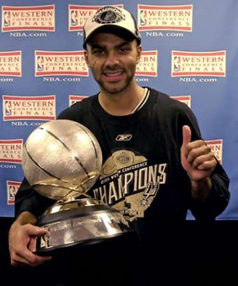 the Western Conference trophy after the Spurs won Game 5 of the NBA