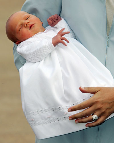 Spain's Princess Cristina shows her newborn daugther Irene to photographers at Barcelona's Teknon hospital in Spain June 8, 2005. Irene, who was born on June 5, is the first girl after three boys of the Duke of Palma Inaki Urdangarin and Princess Cristina. [Reuters]