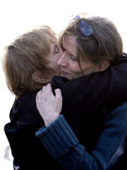 hero's welcome - hugs and kisses from more than 60 relatives and friends.