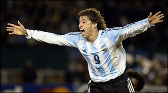 Argentina striker Hernan Crespo celebrates