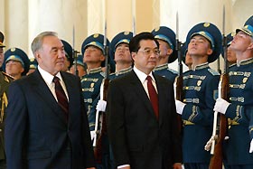 During yesterday's separate meetings with Nazarbayev and Prime Minister Danial Akhmetov, Hu reaffirmed China's consistent policy to develop a long-term friendship with Kazakhstan. On economic and trade relations, Hu suggested more efforts be made to optimize trade structures, adding that emphasis should be placed on boosting energy, high-technology, transportation, agriculture and telecommunications co-operation. Hu expressed China's support for Kazakhstan's early entry to the World Trade Organization. At the conclusion of Hu's visit, the two presidents witnessed the signing of a raft of agreements yesterday after their meeting, including those on finance, natural resources, and transportation. In a joint statement of strategic relations, the two heads of state noted that terrorism, separatism and extremism pose a severe threat to the lives of local people, as well as to regional security and stability. Meanwhile, the two heads of state stressed that the strategic partnership is not directed against any third party. Both sides will fully support the construction of an oil pipeline linking Atasu in Kazakhstan to the Alataw Pass in northwestern Xinjiang Uygur Autonomous Region, and promote a feasibility study on a gas pipeline linking the two nations, says the statement. Kazakhstan has become China's second largest trading partner in the CIS following Russia. Bilateral trade hit a record US$ 4.5 billion last year, up 37 per cent on the previous year.