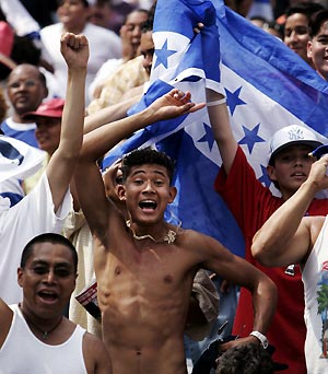 Honduras fans celebrate as their team beat Costa Rica 3-2 to advance to the