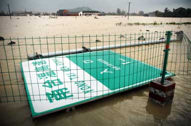 Haitang, lies on the flooded road in Pingyang County, Zhejiang Province