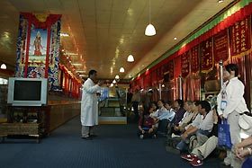 Tourists from Taiwan listens to the introduction to the traditional Tibetan medicine at the Tibetan Medicine Museum in Lhasa, Tibetan on July 4, 2005. [newsphoto]