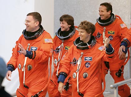 During the spacewalks, the pair will test new repair techniques for the shuttle's tiles and delicate carbon panels; replace a gyroscope, which helps steer the international space station; and install a storage platform on the station. Commander Eileen Collins and Pilot James Kelly were set to reposition the shuttle twice to make sure the vehicle is positioned correctly to catch up with the international space station for its docking Thursday. The crew spent most of Tuesday turning their "rocket into a Winnebago," said astronaut Daniel Tani, who flew aboard the shuttle in 2001. "It is a big reconfiguration," Tani said of the work Discovery's crew had to do to turn the shuttle from rocket into orbiting vehicle. Two chase planes and more than 100 cameras documented Discovery's trip to orbit. NASA wants to document any sign of flying debris that could threaten the shuttle. NASA officials said Tuesday an object that may have been a 1 1/2-inch piece of thermal tile appeared to break off from the Discovery's belly during liftoff. It came from near a particularly vulnerable spot, close to the doors to the compartment containing the nose landing gear. Also, a large object — perhaps a piece of foam insulation — seemed to fly off from the giant external fuel tank but did not hit the shuttle itself, NASA flight operations manager John Shannon said. But Shannon stressed it was too early to say whether there was any danger to the shuttle or its crew. "There is no question that we have more data now than we have ever had before," Flight Director LeRoy Cain told The Associated Press. "We are going to see things when we look and so one of the things we have worked really hard on is to make sure we understand what are we looking at." The new cameras and inspections are part of safety procedures put in place for NASA to return to space following the grounding of its shuttle fleet after the breakup of space shuttle Columbia in 2003. Columbia was brought down by a suitcase-size piece of foam insulation, which broke off the external fuel tank during liftoff and struck one of the shuttle's wings. The resulting gash allowed hot gases into the wing during Columbia's return to Earth 16 days later on Feb. 1, 2003. All seven astronauts aboard died as the shuttle disintegrated over Texas. NASA officials said they could barely make out the foam strike in the photographs because of the poor quality of the images they had. The new cameras and lasers will provide the space agency with more detailed images than it has ever seen before, Shannon said. But it is unclear if the debris spotted so far represents anything out of the ordinary. Shannon said the tiles on NASA's shuttle fleet have sustained thousands of dings over the years. "One of the things that is going to be critical for us is to give the experts opportunity and time to bring the data in, review it, analyze it and bring it forward and have that in a cohesive way, so that we don't have folks running off in different directions without the full story," Cain said.