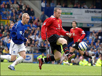 United's Wayne Rooney during their Premiereship clash at Goodison Park,