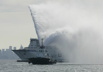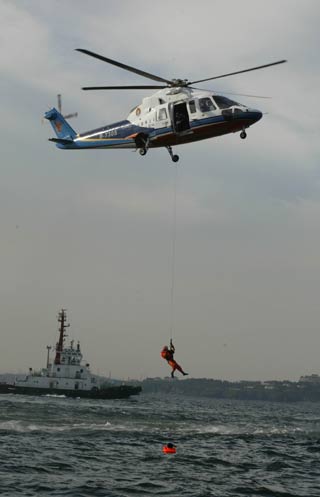 Maritime rescue drill held in Dalian (newsphoto) Updated: 2005-08-21 11:12
